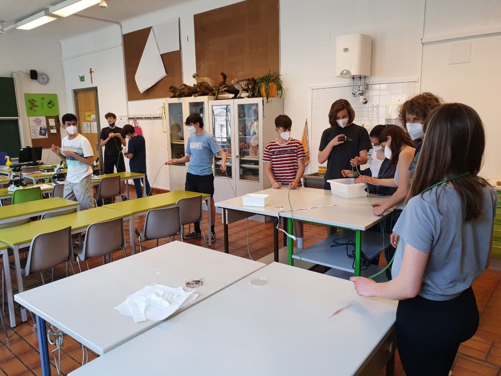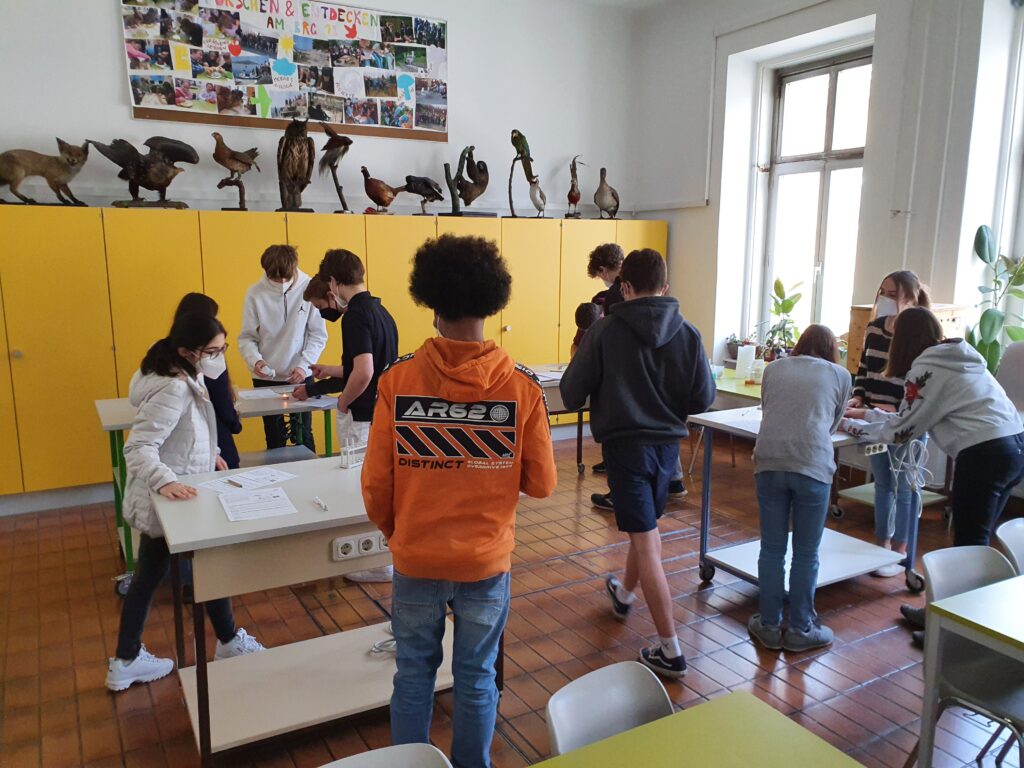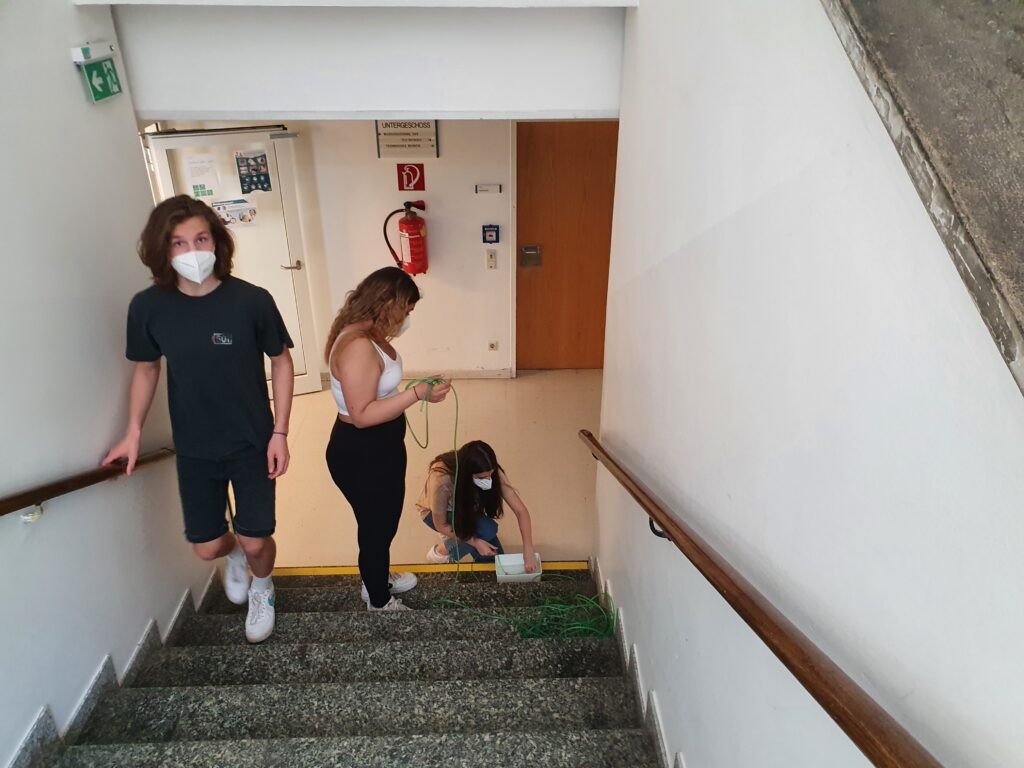 In anderen Einheiten zur Botanik haben wir die Wassersäule in einem Baum nachgestellt und im Stiegenhaus getestet, wie lange sie sich in einem Schlauch hält, beeindruckend, wie Bäume das machen.